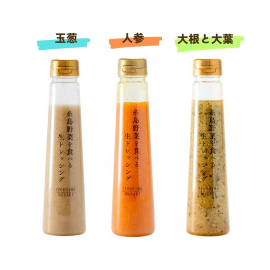 糸島野菜を食べる生ドレッシング3本セット (玉葱・人参・大根と大葉)