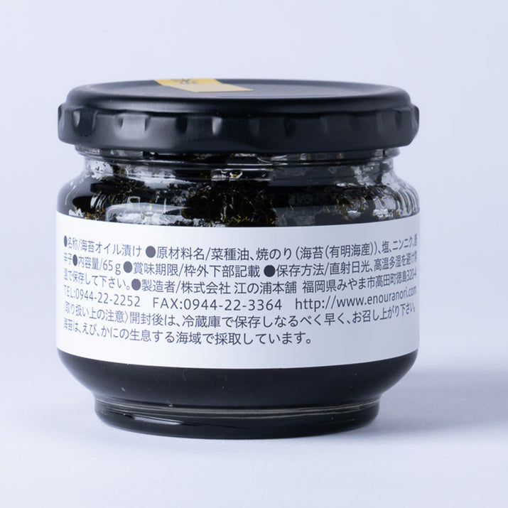 | 原材料名 | 菜種油、焼きのり(海苔(有明海産))、塩、にんにく、唐辛子 |