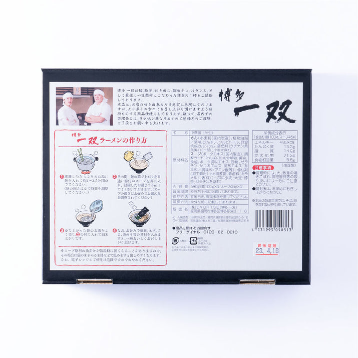 | 原材料名 | めん:小麦粉(国内製造)、植物油脂/酒精、かんすい、ソルビトール、貝殻焼成カルシウム、着色料(クチナシ色素)、(一部に小麦を含む) スープ:ポークエキス(国内製造)、調整ラード、ポーク調味エキス、砂糖、ゼラチン、かつおエキス、昆布エキス、香辛料/調味料(アミノ酸等)、増粘剤(加工澱粉)、pH調整剤、着色料(カラメル)、香料、(一部に小麦、大豆、豚肉、ゼラチンを含む) |