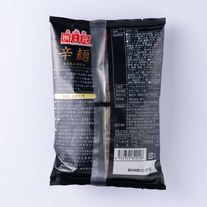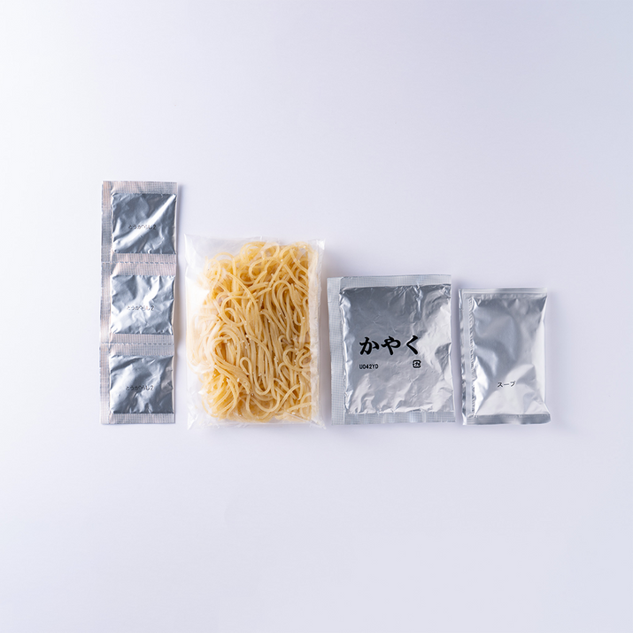 | 原材料名 | めん(小麦粉、でん粉、そば粉、食塩、加工でん粉、酒精、かんすい)スープ(醤油、糖類(水飴,砂糖)、ポークエキス、食塩、チキンエキス、胡麻油、蛋白加水分解物、味噌、ビーフエキス、ガーリックパウダー、鰹エキス、にんにく(宮崎県産)、香辛料、調味料(アミノ酸等)、増粘多糖類、カラメル色素、(原材料の一部に小麦、大豆を含む)かやく(味付け挽肉(ラード、乾燥卵白、植物性たん白、豚肉、醤油、砂糖、鶏肉、チキンエキス、食塩、コショウ、たまねぎ、ガーリックパウダー、ジンジャーパウダー)、ニラ(ニラ、ブドウ糖)、粉末セルロース、調味料(アミノ酸等)、カラメル色素、酸化防止剤(ビタミンE、ローズマリー抽出物)、(原材料の一部に小麦、大豆を含む)薬味(唐辛子) |