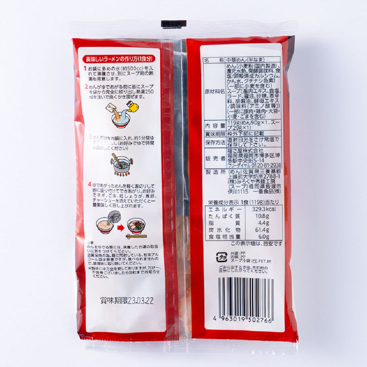 | 内容量 | 119g(めん90g×1、スープ29g×1) |