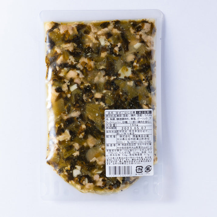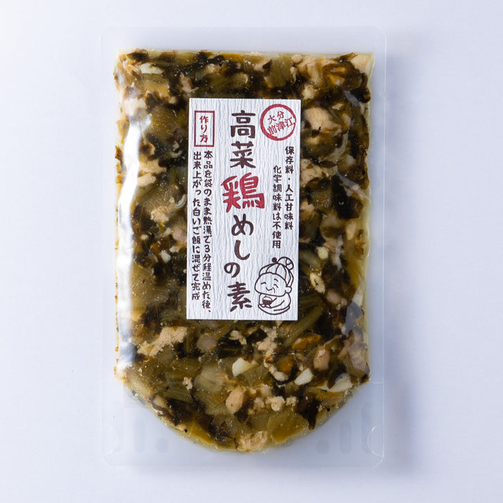 | 原材料名 | 高菜(国産)、鶏肉(国産)、なたね油、魚醤、醸造調味料、食塩、ガーリック、ブラックペッパー、砂糖、(一部に鶏肉を含む) |